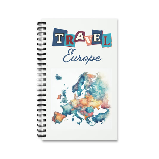 Travel Europe Spiral bound travel notebook, choose dot grid, lined or blank pages for your backpacking or travels across Europe